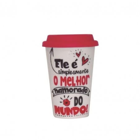 Uma linda lembrança para o dia dos namorados, dia de S. Valentim ou aniversário para oferecer ao seu namorado, "ele é simplesmente o melhor namorado do mundo". Copo em porcelana com tampa em silicone.