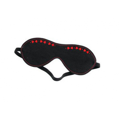 Máscara de couro preto com corações vermelhos. Excelente qualidade, exterior em pele e interior em camurça.