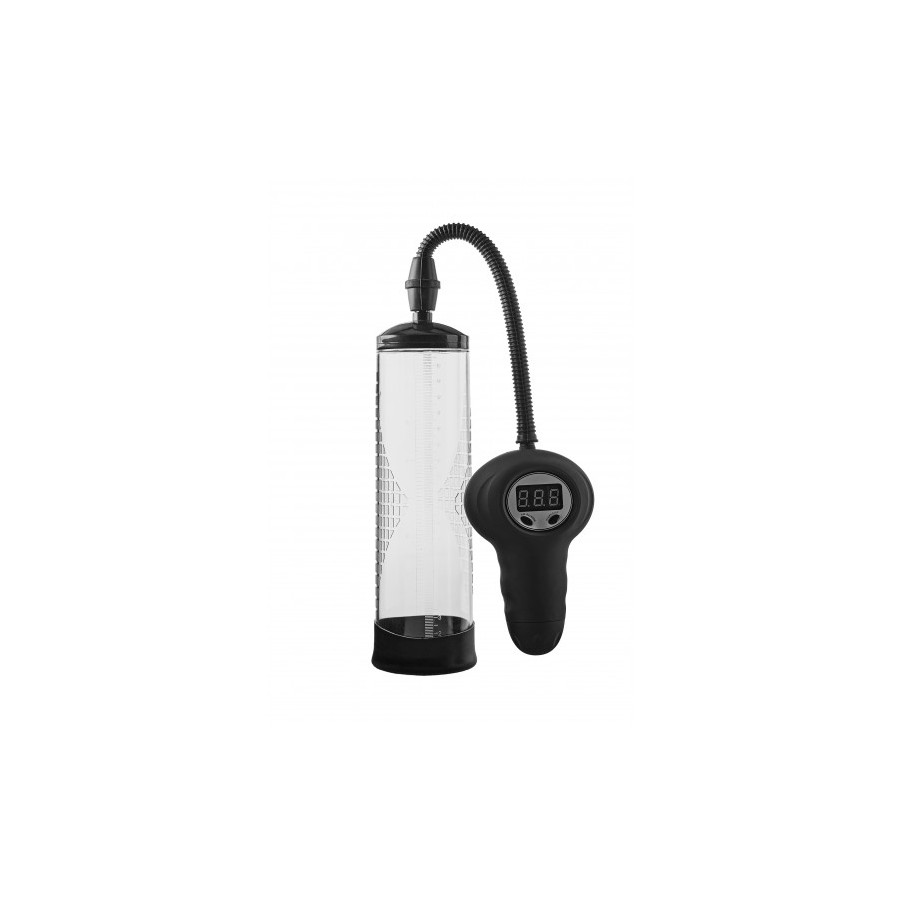 Melhore sua ereção e desempenho com esta bomba e masturbador de pênis automático com medidor de pressão digital e sucção a vácuo de velocidade única. O vácuo também ajuda a obter e manter uma ereção em caso de disfunção erétil. Cilindro transparente com marcas de tamanho. Com a manga extra, a bomba pode ser usada como masturbador. Incluindo anel peniano. Requer 4 pilhas AA, não incluídas.