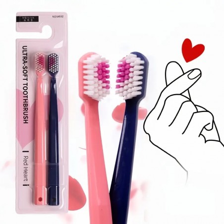 Esse kit especial contém duas escovas, uma preta e uma branca, simbolizando a harmonia e a complementaridade em cada detalhe. ✨ Características: 2 Escovas (1 rosa e 1 azul) Cabos que se complementam formando um coração Cerdas macias para uma escovação suave e eficaz