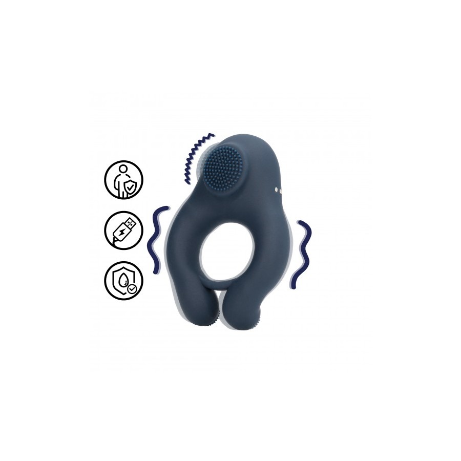 Anel Vibratório com Estimulação Clitoriana Azul Índigo Loveline. Este anel vibratório para casais com estimulação clitoriana apresenta vibrações intensas e foi concebido para proporcionar sensações agradáveis a ambos os parceiros, com uma escova sensível que estimula os testículos e o clitóris ao mesmo tempo, levando a clímaxes mais intensos. Descubra momentos de alegria sem fim e apimente a sua vida com Loveline!