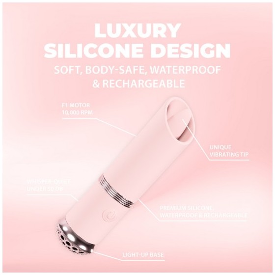 Da Coleção Loveline International Paris, o Luxe é a personificação da elegância em um formato compacto. Este mini vibrador para batom com 10 funções apresenta uma ponta vibratória com formato exclusivo para estimulação precisa e uma base iluminada que muda de cor a cada modo, adicionando sofisticação ao seu desempenho potente.