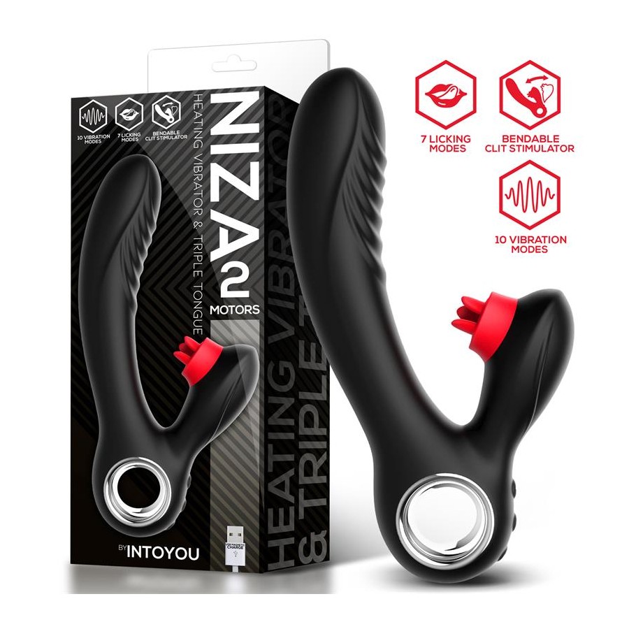 Nice, um vibrador com dois motores, efeito de calor e língua tripla estimulante para o clitóris. Nice tem, como já lhe dissemos, com dois motores, dois motores com os quais você pode controlar os poderosos e já conhecidos 10 modos de vibração, as divertidas 7 funções de linguagem estimulante e a função de calor ardente.