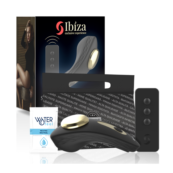 Com o ímã prático, o vibrador IbizaTM Silicone Panty liga-se silenciosamente às calcinhas e estimula o clitóris graças à sua forma ergonómica e vibrações intensas. O silicone bodysafe para a pele e controle remoto do controlador totalmente discreto resulta em um brinquedo exclusivo.