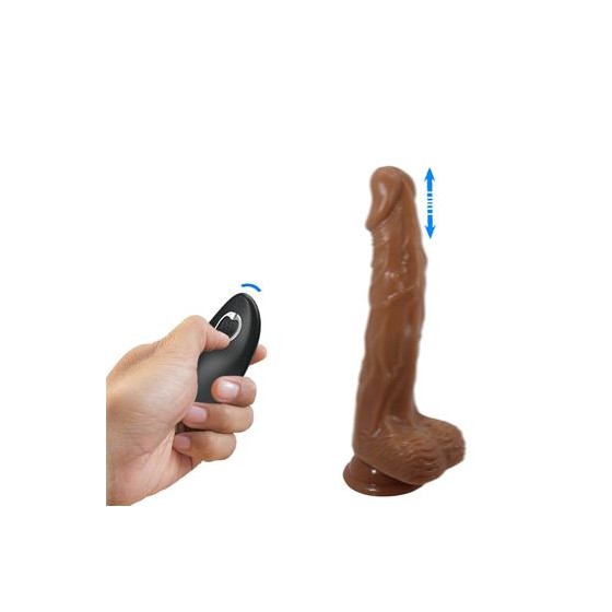 Este vibrador realista destaca-se por suas funções extraordinárias de rotação, impulso e vibração em 7 modos. É super realista graças à sua coluna, veias e testículos pronunciados. A ventosa permite o prazer sem as mãos. Todas as funções podem ser facilmente controladas por um controle remoto.