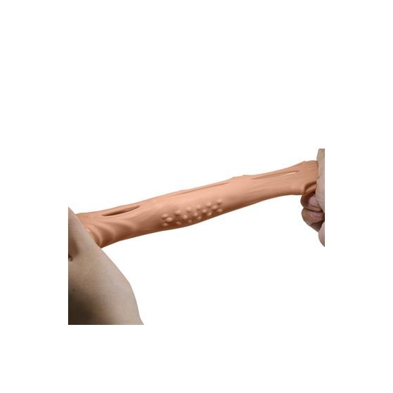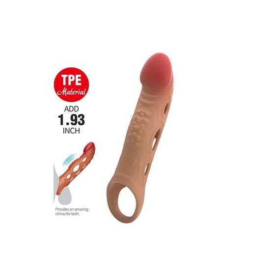 Aproveite este caso de pénis com vibração ao máximo. Este caso, que melhora a ereção e promete prazer intenso, é feito de TPE macio e é preso com um loop. Um pequeno e poderoso vibrador no centro e extensão do caso lhe dão prazer extra. A bainha elástica se encaixa no seu pénis para uma ereção mais firme e durável, para que possa aproveitar mais o momento.