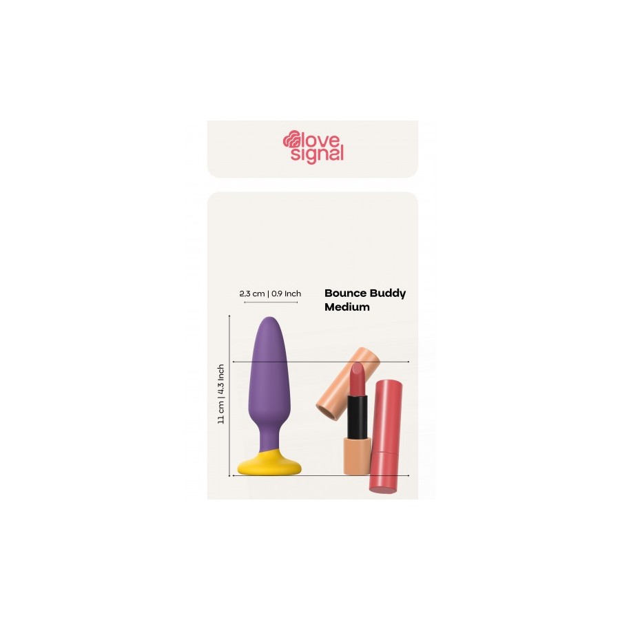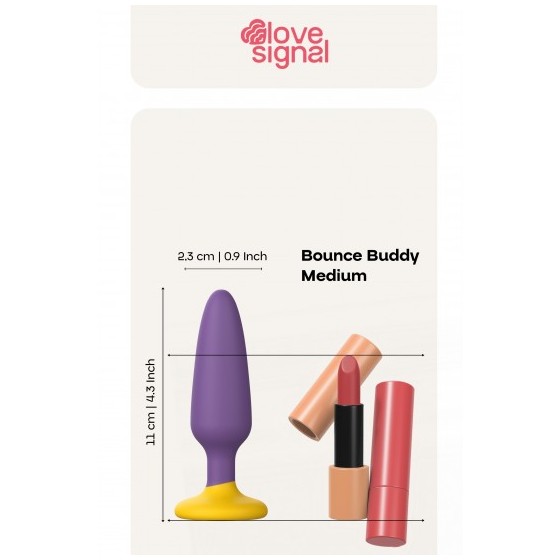 O Bounce Buddy Medium da coleção Love Signal da Dreamtoys é um plug anal de tamanho médio perfeito para quem está pronto para explorar prazeres mais profundos, sua ponta levemente afilada permite uma inserção fácil, enquanto o acabamento em silicone elegante e seguro para o corpo garante uma sensação luxuosa e suave.
