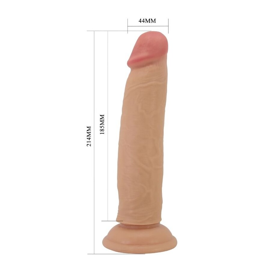 Dildo realístico em TPR com textura natural e cabeça generosa. Inclui ventosa resistente para fixação segura e design anatómico com núcleo de vértebras flexível, adaptando-se ao corpo. Impermeável e ideal para momentos íntimos intensos no banho ou fora dele.