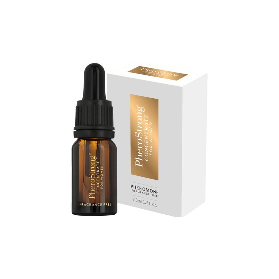Concentrado de feromonas sem fragrância para mulheres excitarem os homens. O PheroStrong CONCENTRATE foi desenvolvido para mulheres que desejam elevar a sua presença e magnetismo de forma discreta. Este concentrado de feromonas, sem fragrância própria, mistura-se facilmente ao seu perfume favorito, intensificando o seu poder de atração e proporcionando uma nova dimensão à sua fragrância pessoal.